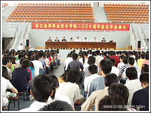 教师代表人文旅游系张俊磊老师和2006届毕业生代表现代物流200302班黄栋同学分别在会上作了发言。会上还宣布了2006届省级、校级优秀毕业生名单,学院领导分别为优秀毕业生颁奖。