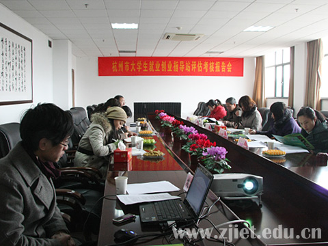 1月11日下午,杭州市大学生就业创业指导站评估组莅临我院,对我院大学生就业创业指导工作进行评估检查。评估组由杭州市教育局高教师范处副调研员徐兴刚、杭州市就业管理服务局专业技能人员交流服务处副处长刘颖、杭州市就业管理服务局陈莉、杭州市人事局章思芬和杭州市职业技能培训指导中心乔渝等专家组成。