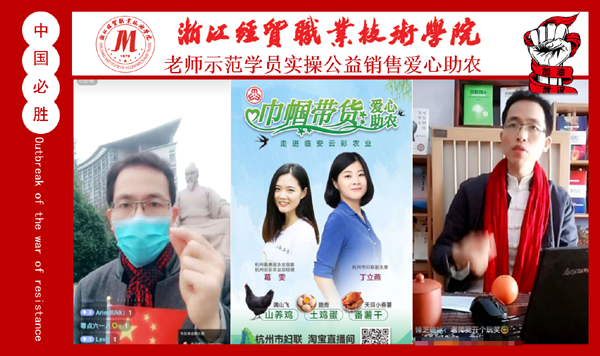 疫情期间,继续教育学院副院长丁勇多次采用腾讯直播等形式,向数千名我校培训班学员开展以《科学抗疫·丁老师直播公益助农》为主题的培训,详细演示了农产品直播销售的方法和技巧。同时,在充分做好自身安全防护的情况下,他驱车到德清优秀学员所在地——早园笋山伢儿专业合作社联合社基地,采用现场微信直播形式,助力德清早园笋学员公益卖货,直播期间累计公益销售德清早园笋1000多斤。3月3日16:00-17:00,在学校相关培训导师的指导下,我校培训班优秀学员杭州最美返乡女创客、临安云彩农业经理葛雯和杭州市妇联副主席丁立燕等,以“巾帼带货爱心助农”为主题,采用淘宝直播的形式,为临安周边的农民进行直播卖货现场演示教学。直播期间累计销售山养鸡、土鸡蛋、天目小香薯共计3000多单,极大地鼓舞了我校农民学员直播卖货、科学抗击疫情的信心,进一步提升了他们的职业素养和营销实战能力。