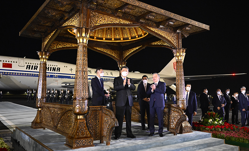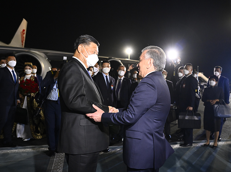 当地时间9月14日晚,国家主席习近平乘专机抵达撒马尔罕,开始对乌兹别克斯坦共和国进行国事访问并出席上海合作组织成员国元首理事会第二十二次会议。