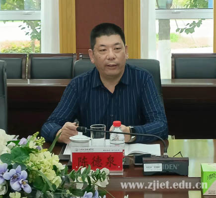 冯志明对陈德泉一行的到来表示欢迎,详细介绍了学校的基本情况和专业设置。他指出,浙江经贸学院是行业龙头高职院校,此次来访更是为学校送来了宝贵经验。希望浙江经贸学院能够持续的在“双高”建设、专业调整、教学资源整合共享等方面给予帮助和支持,共同为办好行业高职教育贡献力量。