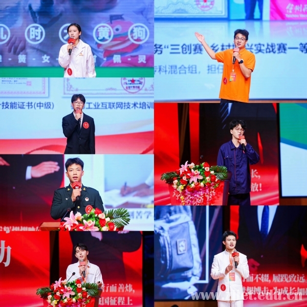 活动现场,选手们按照抽签顺序依次登台,以推荐视频、个人展示的形式进行展示。他们结合专业学习、科研竞赛、志愿服务、文化传播等经历,讲述青春励志故事,充分展现了浙江省高职院校大学生优秀的综合素质和良好的精神风貌。他们中有多次斩获国奖、发明专利的科研竞赛能手,有用专业所学助力乡村、企业振兴的新时代畜牧人,有续写父辈坚守、传承父辈精神的退伍军人,有航空安全员、亚运“小青荷”、青年岗位能手……他们坚定理想、奋发进取、立志奉献、矢志报国,生动诠释了当代大学生的责任与担当。