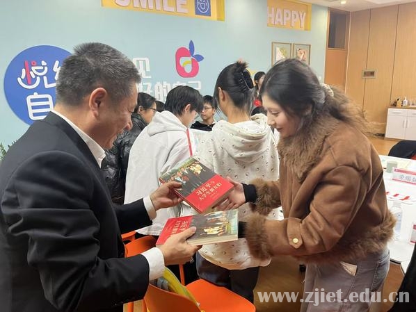 少数民族学生代表向劳赐铭赠送了他们亲手制作的印有“各族人民大团结”“民族团结心连心”字样的剪纸作品,以此表达民族团结一家亲的美好祝愿。劳赐铭也向学生回赠了《习近平与大学生朋友们》一书,鼓励他们多读书、读好书,不断提升自我。